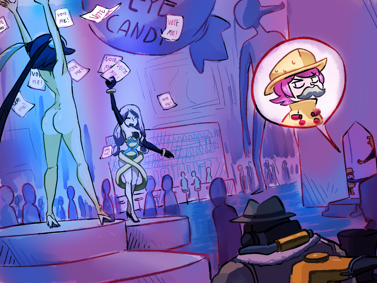 aeon (skullgirls)+big band+feng (skullgirls)+peacock (skullgirls)